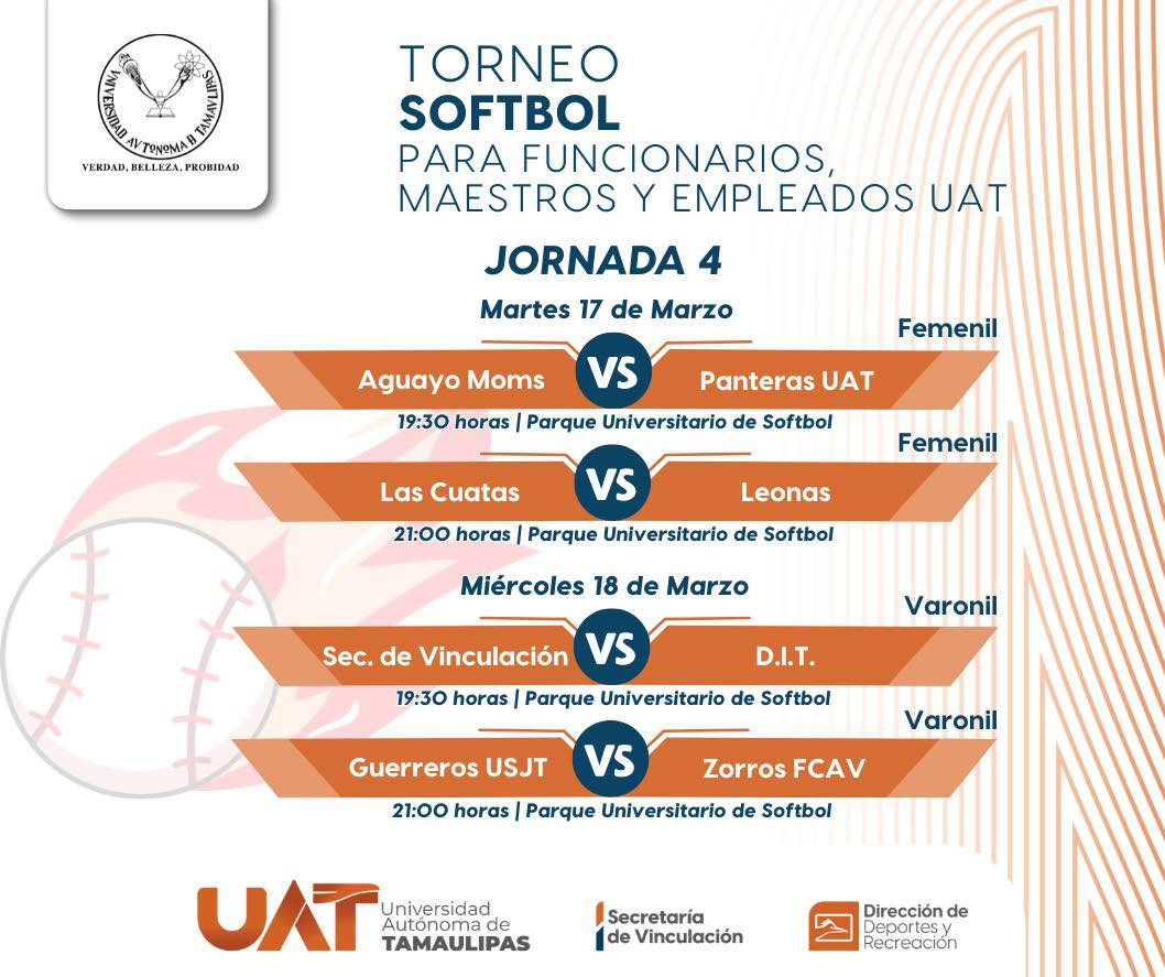 Cd. Victoria, Tamaulipas 17 de marzo del 2026.- Este martes iniciamos con las acciones en el Torneo de Softbol para Funcionarios, Maestros y Empleados del CU Victoria de nuestra Universidad Autónoma de Tamaulipas