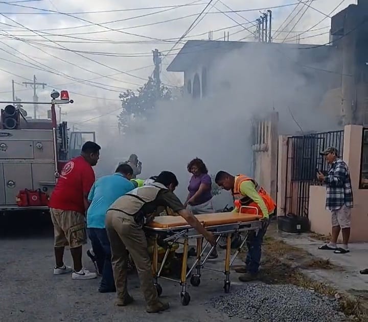 Matamoros, Tamaulipas.— Una menor estuvo al borde de la muerte la tarde de este viernes luego de quedar atrapada e inconsciente dentro de una vivienda envuelta en llamas en el fraccionamiento Infonavit Los Ángeles. La oportuna y arriesgada intervención del Heroico Cuerpo de Bomberos evitó que la tragedia tuviera un desenlace fatal.